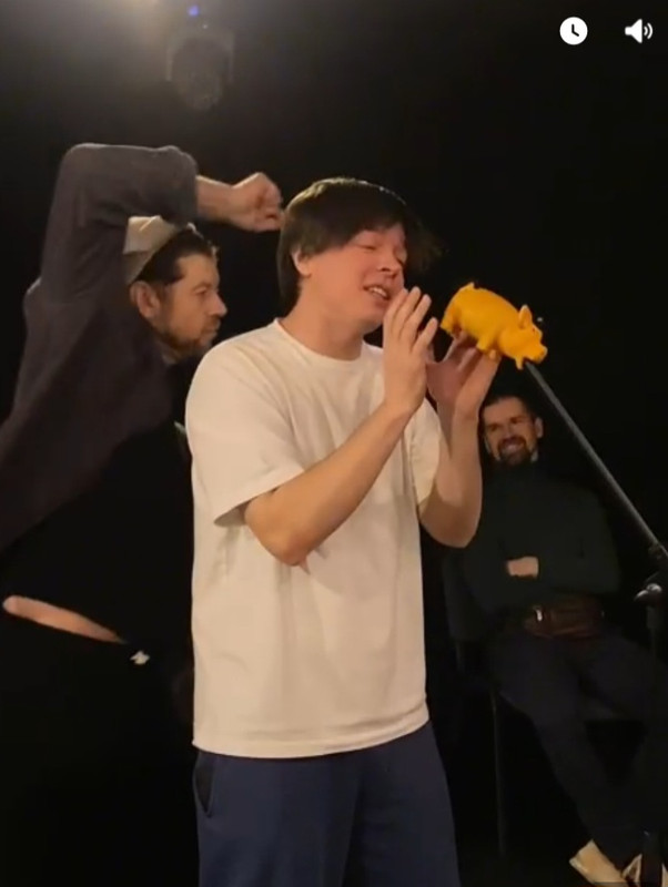 Ну что мы с Русланом сделаем, таблетки ему для памяти подарим или веником по жопе надаём? Для того, чтобы делать ему втык за забытые слова, у Руслана есть большой внутренний критик, он в курсе. В Вие и ЧКС со словами у него порядок. ПИ забывал, потому что отвлекался, как режиссёр, на всё вокруг. Тут отвлекаться не пришлось, всё оттарабанил, как боженька.
